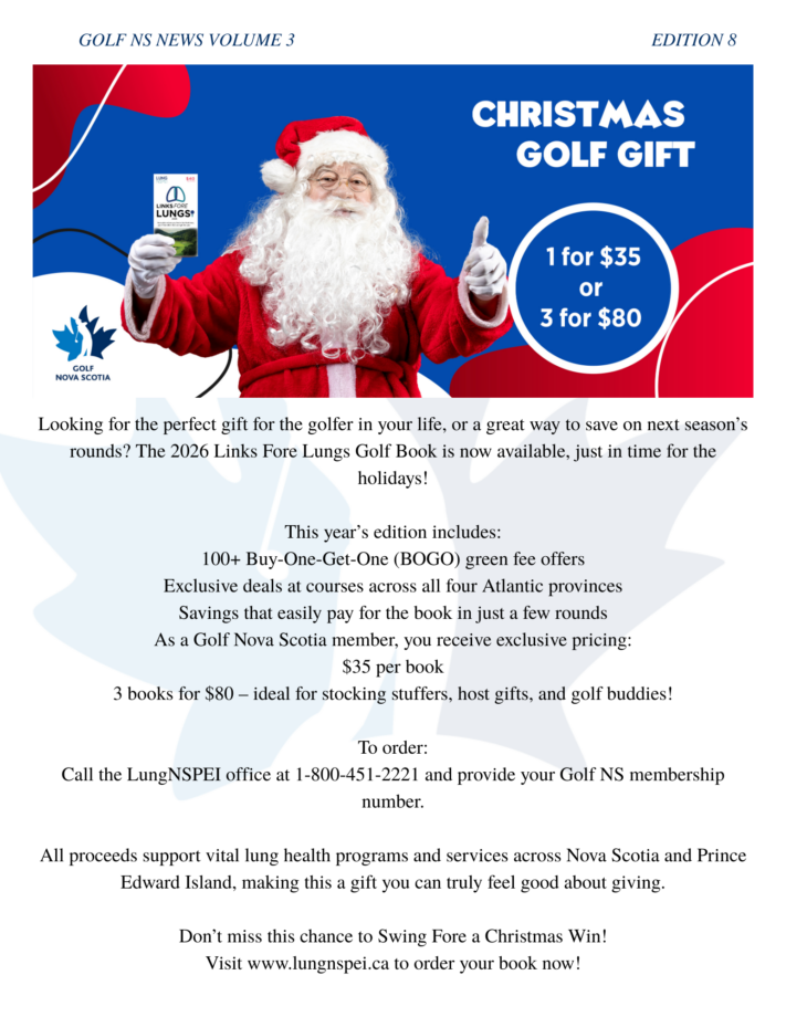 Looking for the perfect gift for the golfer in your life, or a great way to save on next season’s rounds? The 2026 Links Fore Lungs Golf Book is now available, just in time for the holidays!