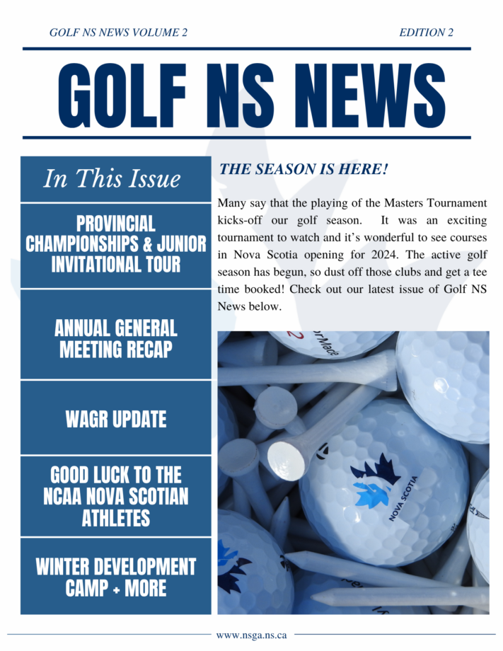 Golf Nova Scotia is preparing for a busy and successful 2024 season. Thank you to all members, clubs, and industry partners for their cooperation and shared commitment. Golf Nova Scotia is dedicated to the success, growth, and future of golf in Nova Scotia