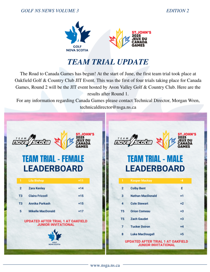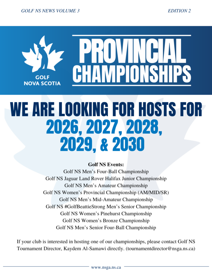 For championship information, including tee times, player profiles, and leaderboard updates, visit www.nsga.ns.ca.