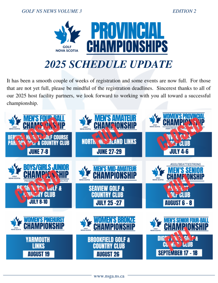 The 2025 Golf NS Women’s Provincial Championship will feature: